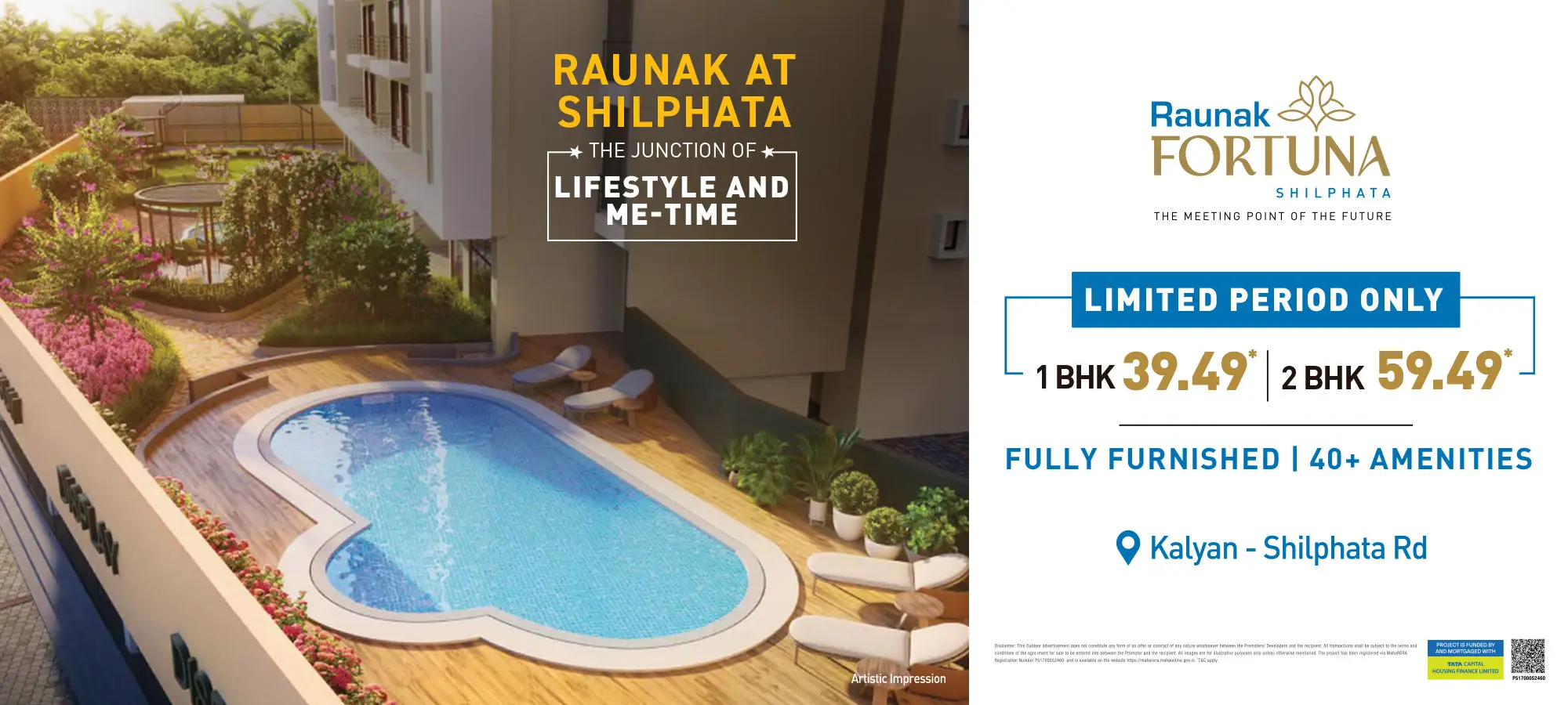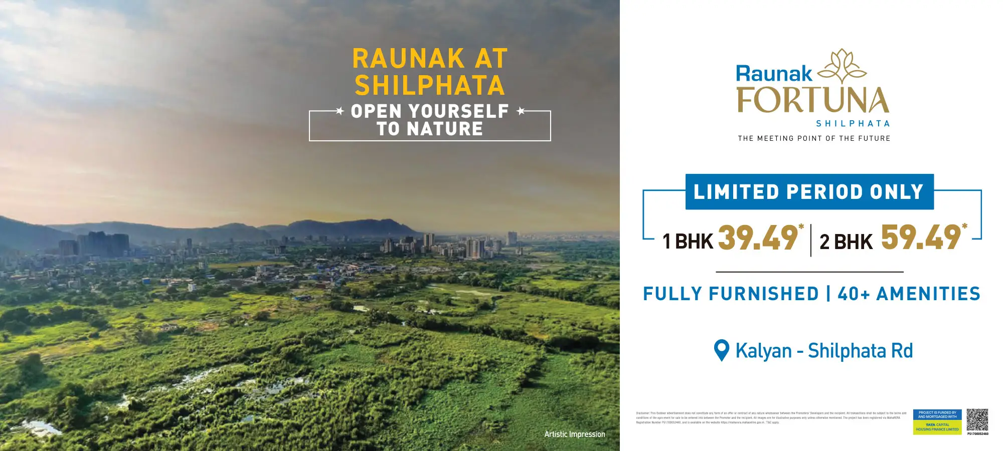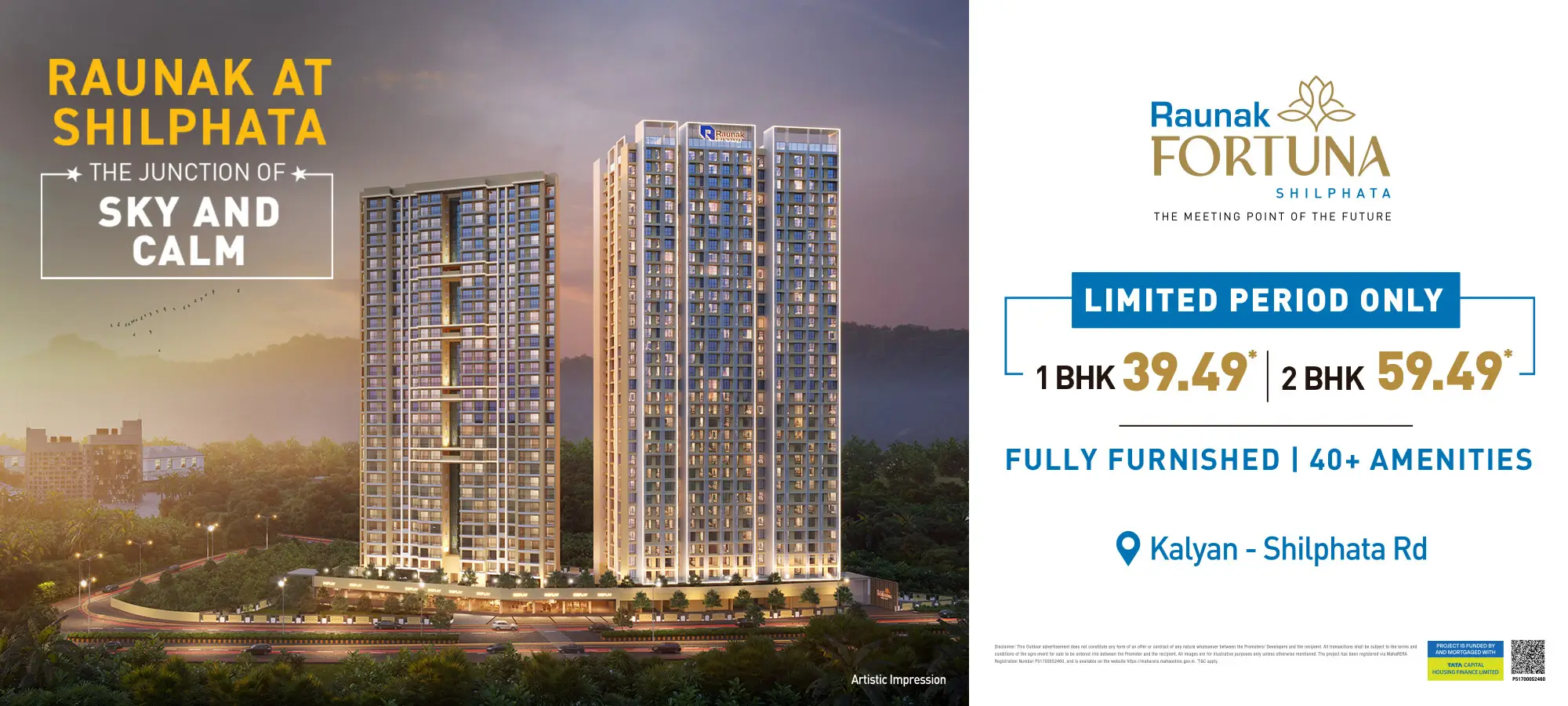 After advancing Thane and Kalyan over 104,00,000 sq ft Team Raunak is here and prepared to embark on the Shilphata story with its fresh new concepts of life and lifestyle. Raunak Fortuna is the Junction of You and the World. It connects the vibrancy of Mumbai and Navi Mumbai with the growth of Thane and Kalyan. We are bringing our entire development experience, lifestyle planning, designs and engineering quality to create the Shilphata story. Raunak Fortuna is a 40-floor project with the hills in the distance and wide open green spaces fields out in front. It is truly a beacon of the brilliant future that awaits Shilphata.